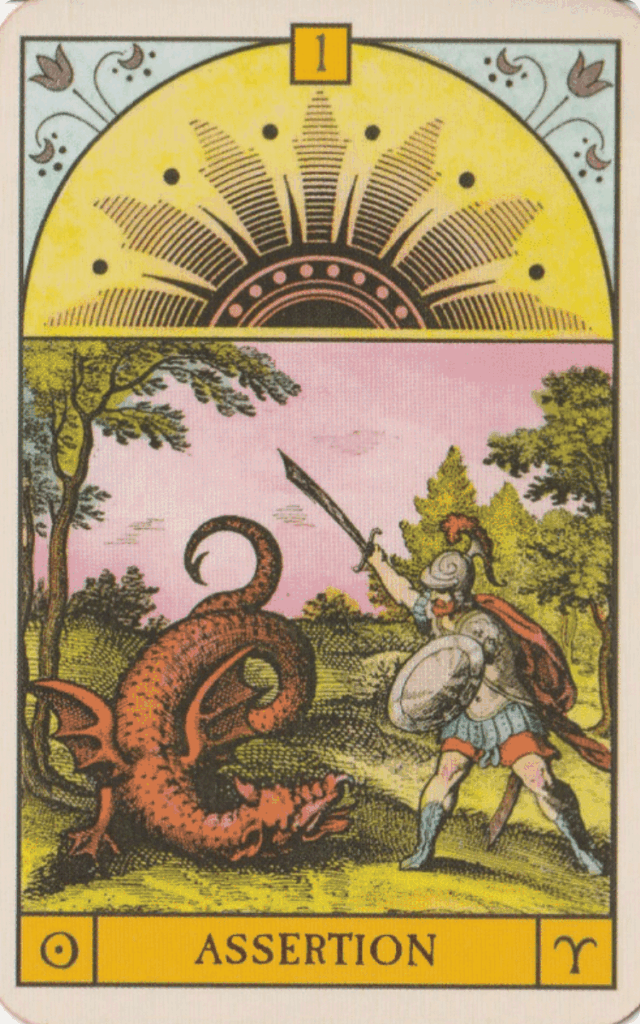 The knight and dragon speak for themselves. This card indicates a quality of reckless heroism, and a refusal to be deterred from the battle.